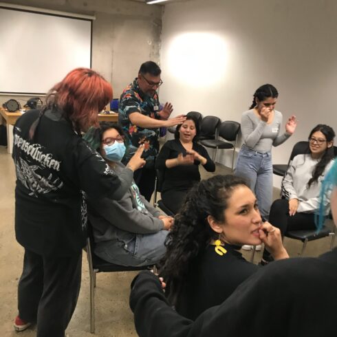 Taller de teatro y educación 2023, con enfoque de derecho y perspectiva de género, dirigida a artistas, docentes y agentes comunitarios. proyecto financiado por el gobierno regional, región de Valparaíso. Formato realizado en Valparaíso (enero) y en Putaendo (marzo).